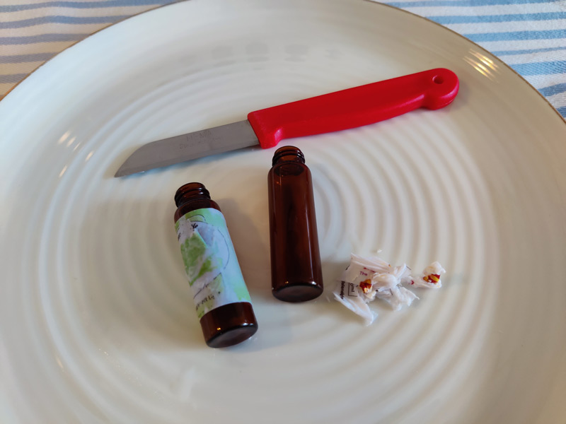 Fill your vial with mineral water or a mix of alcohol and mineral water